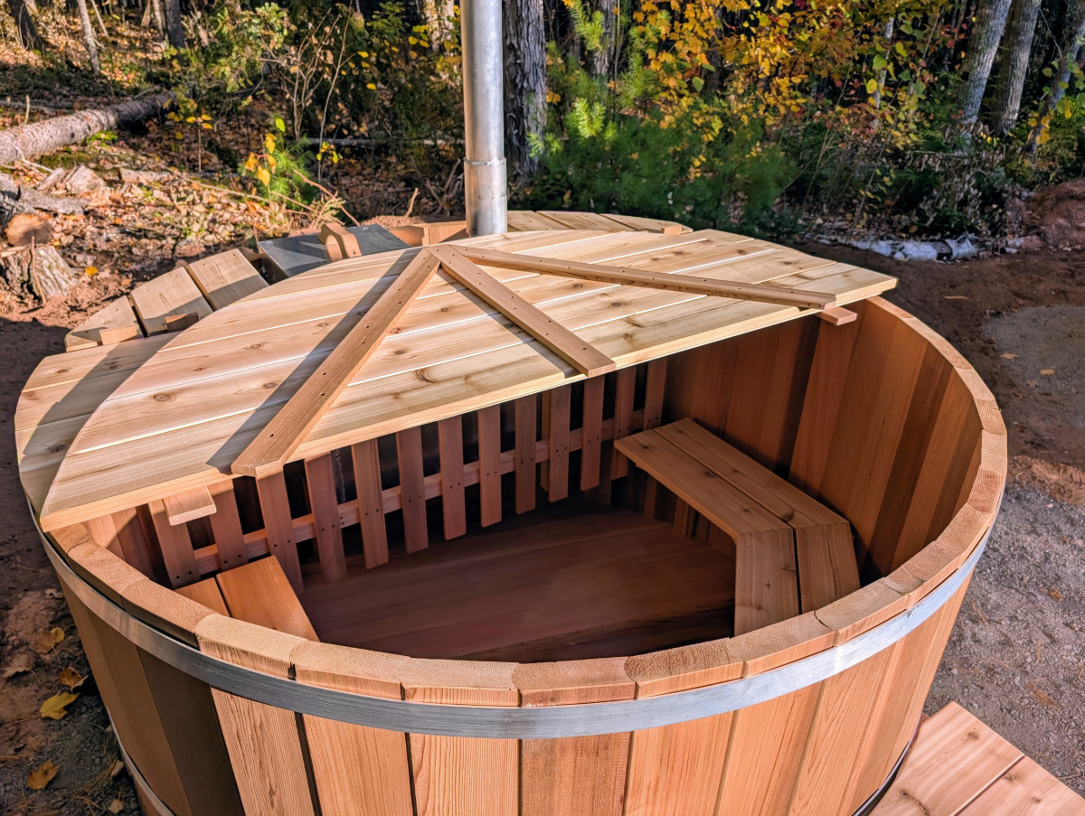 Transform your outdoor space into a year-round oasis with our handcrafted cedar hot tubs. Built by skilled Mennonite artisans using premium Eastern white cedar, these hot tubs blend timeless craftsmanship with modern comfort. The natural cedar construction provides exceptional insulation and releases a subtle, aromatic scent that enhances your relaxation experience. Perfect for both summer entertaining and winter stargazing, our hot tubs offer a chemical-free alternative to traditional acrylic spas.