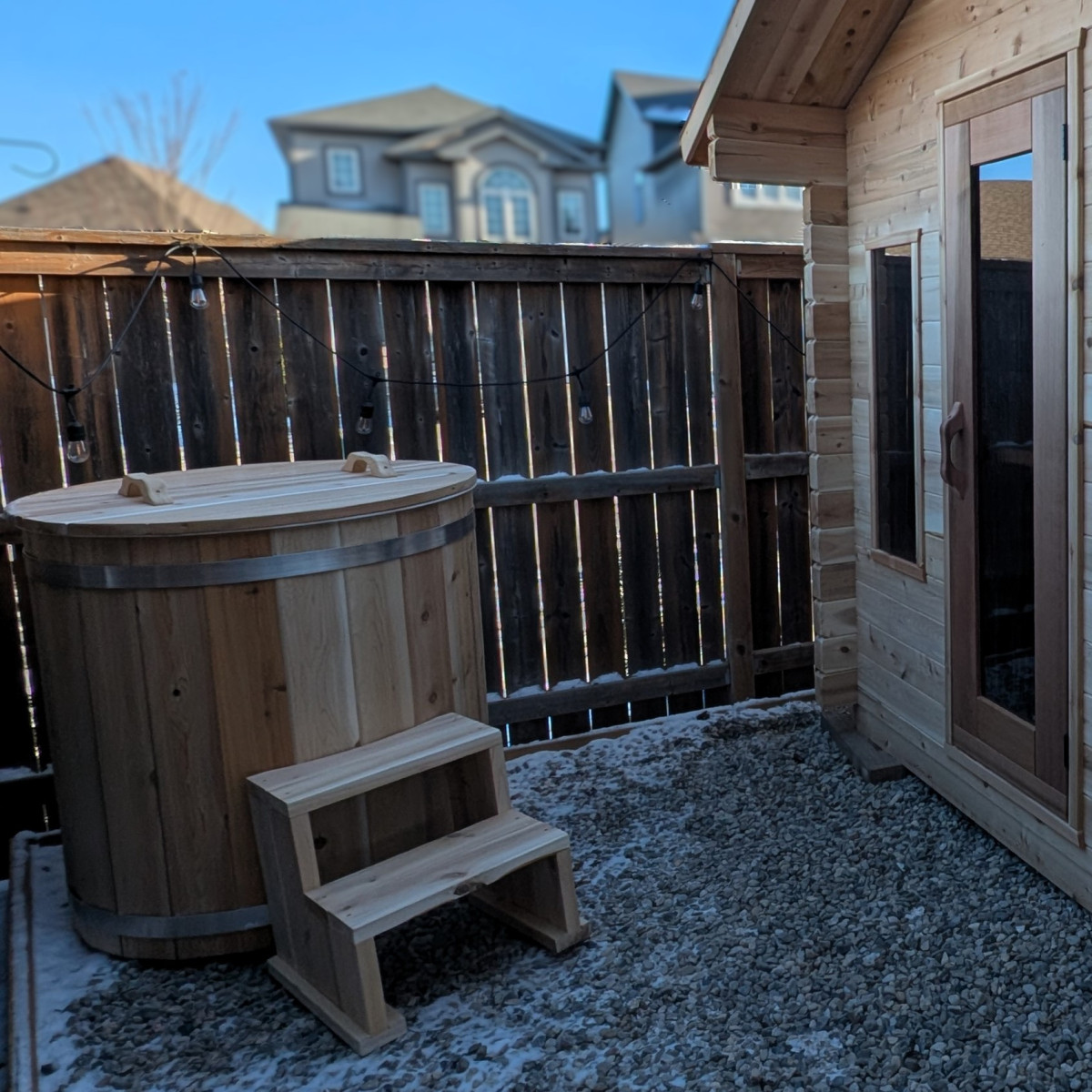 Elevate your wellness routine with our invigorating cedar cold plunge pools. Masterfully crafted using premium Eastern white cedar, these cold plunges are designed for those seeking the proven benefits of cold therapy. The natural cedar construction maintains consistently cool temperatures while providing a beautiful, organic aesthetic. Perfect for post-sauna immersion or as part of your daily wellness practice, our cold plunges offer an authentic way to boost circulation, reduce inflammation, and enhance recovery. Experience the revitalizing power of traditional cold therapy in the comfort of your own space.